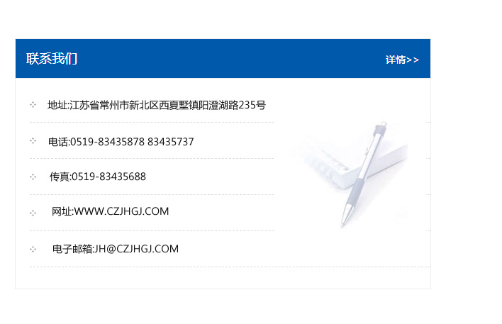 傳真:0519-83435688    郵編:213135    網(wǎng)址:WWW.czjhgj_com.gzjyf168.com    電子郵箱:JH@czjhgj_com.gzjyf168.com